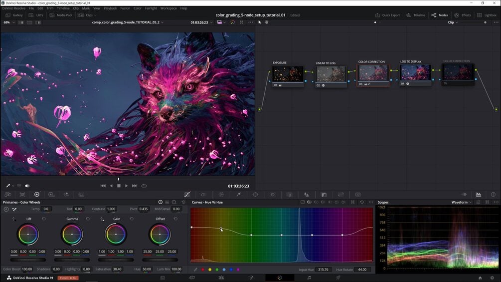 With the groundwork from chapter 1 now laid, here's where things really start to take off: a Pro Color Grading masterclass covering the essentials of the Blender to DaVinci Resolve workflow.