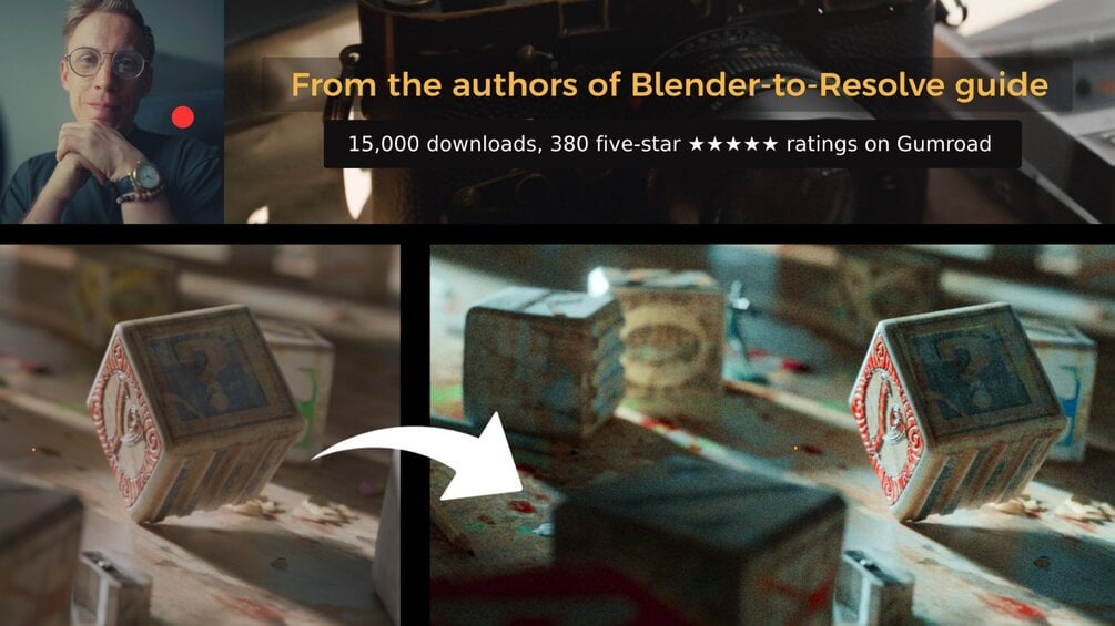 Together with Aidy Burrows we run a YouTube channel with 231,000 subscribers, where we talk about lighting, rendering, and the weird joys of 3D art. You might know me from the Blender to DaVinci Resolve color correction course, which has been downloaded over 15,000 times and received 380 five-star ratings (about 99%, which is pretty wild).